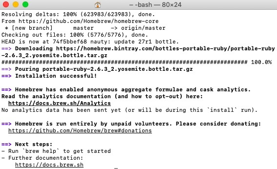 - Instalaremos el gestor de paquetes Homebrew desde la línea de comandos: